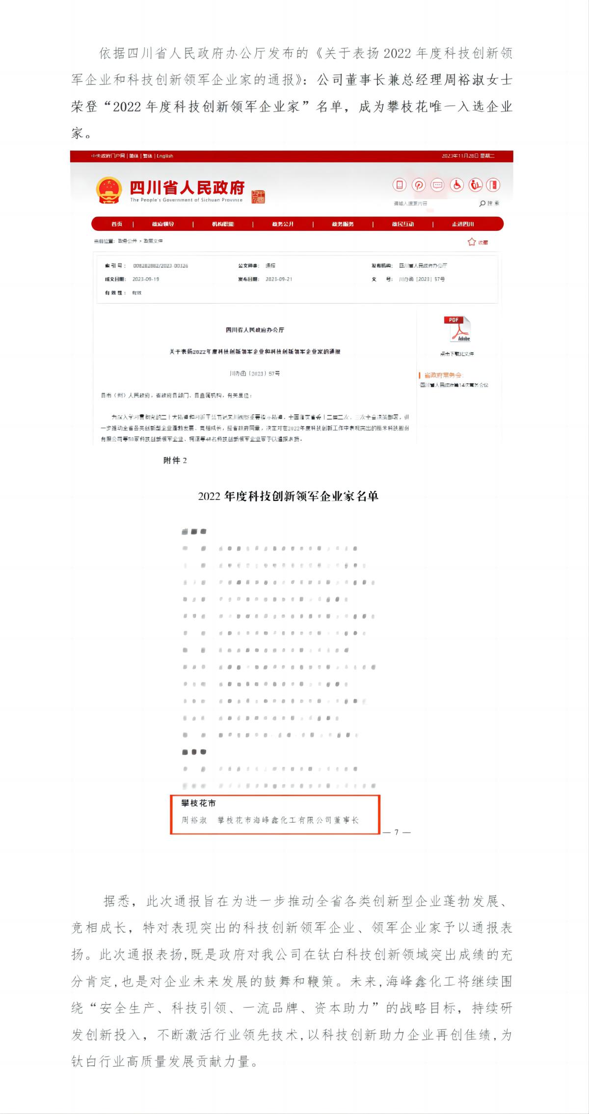 【喜報(bào)】公司董事長周裕淑女士榮獲四川省2022年度科技創(chuàng)新領(lǐng)軍企業(yè)家稱號
