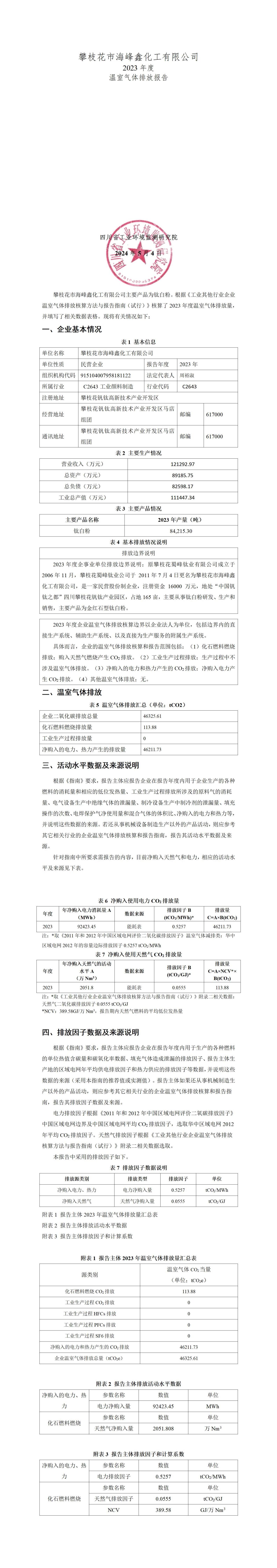 攀枝花市海峰鑫化工有限公司溫室氣體核查報告